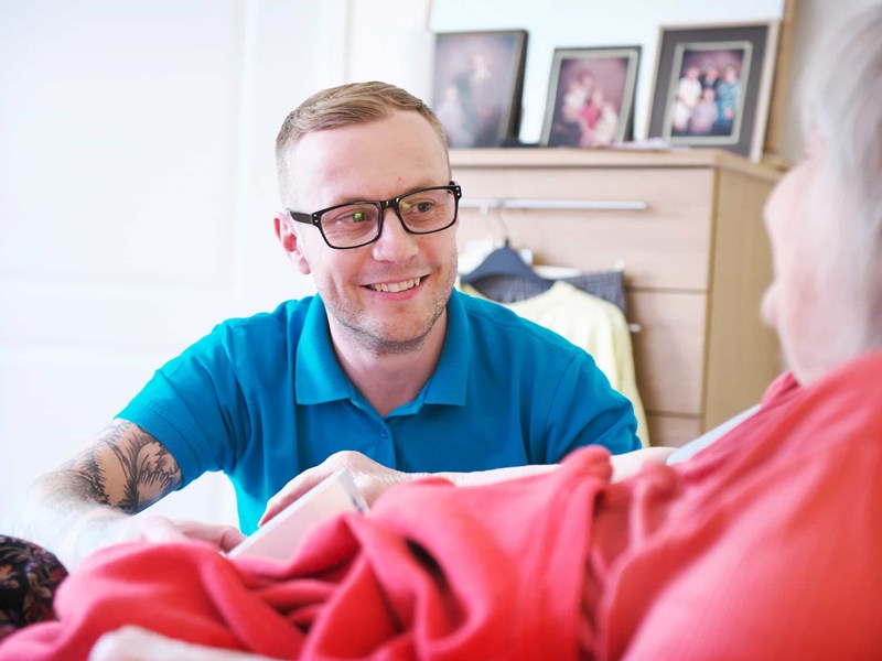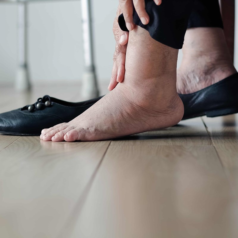 Painful or sore feet can lead to reduced mobility. Wash feet often and use a special foot moistening cream to treat hard skin. Keep them warm in fluffy bed socks or stockings. Wear well-fitting slippers/shoes when walking to prevent slips/trips or falls. A lace-up or velcro fastening shoe will give more support than a slip-on.