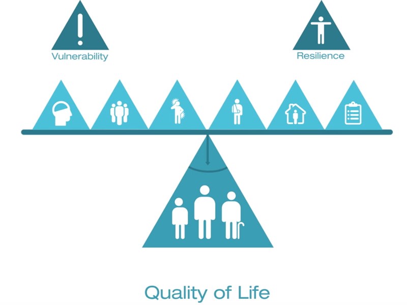 Frailty is a term to describe how our bodies gradually lose their in-built reserves, leaving us vulnerable to dramatic, sudden changes in health, triggered by seemingly small events like a minor infection or a change in medication or environment. Think of it like a see saw - we are trying to keep it balanced.